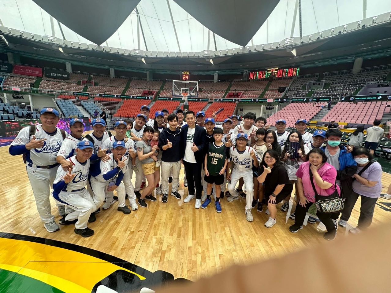 台啤永豐雲豹比賽結束後由孫協志表演賽後演唱 我們球隊並於演唱結束後與孫協志一起合照 包含前職籃明星顏行書也是我們的偶像 一趟桃園職籃行 不但享受了緊張的比賽節奏 也收穫了好多平時都接觸不到的明星及偶像